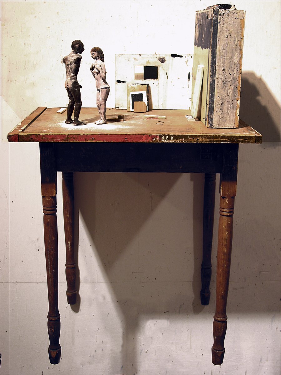 , 2019, oil on metal, wood, canas, photo, wire, 6x8x2"