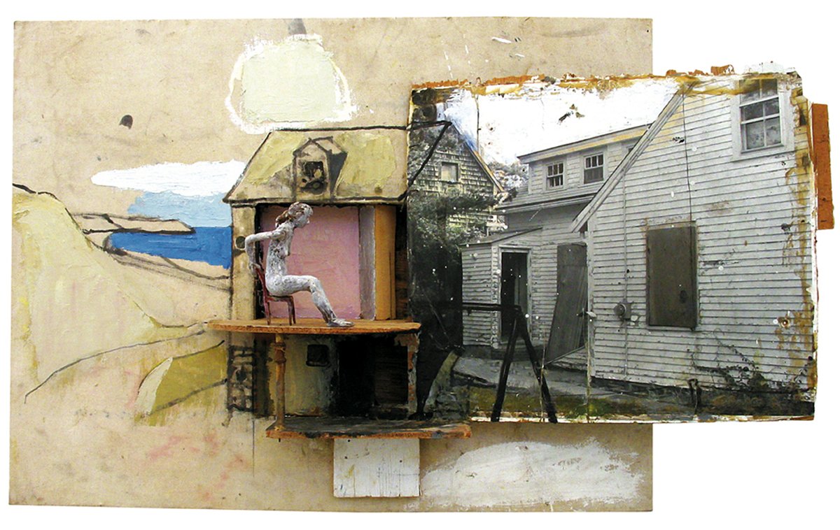 , 2015, oil on canvas, photo, wood, wax, wire, 15x16x6"