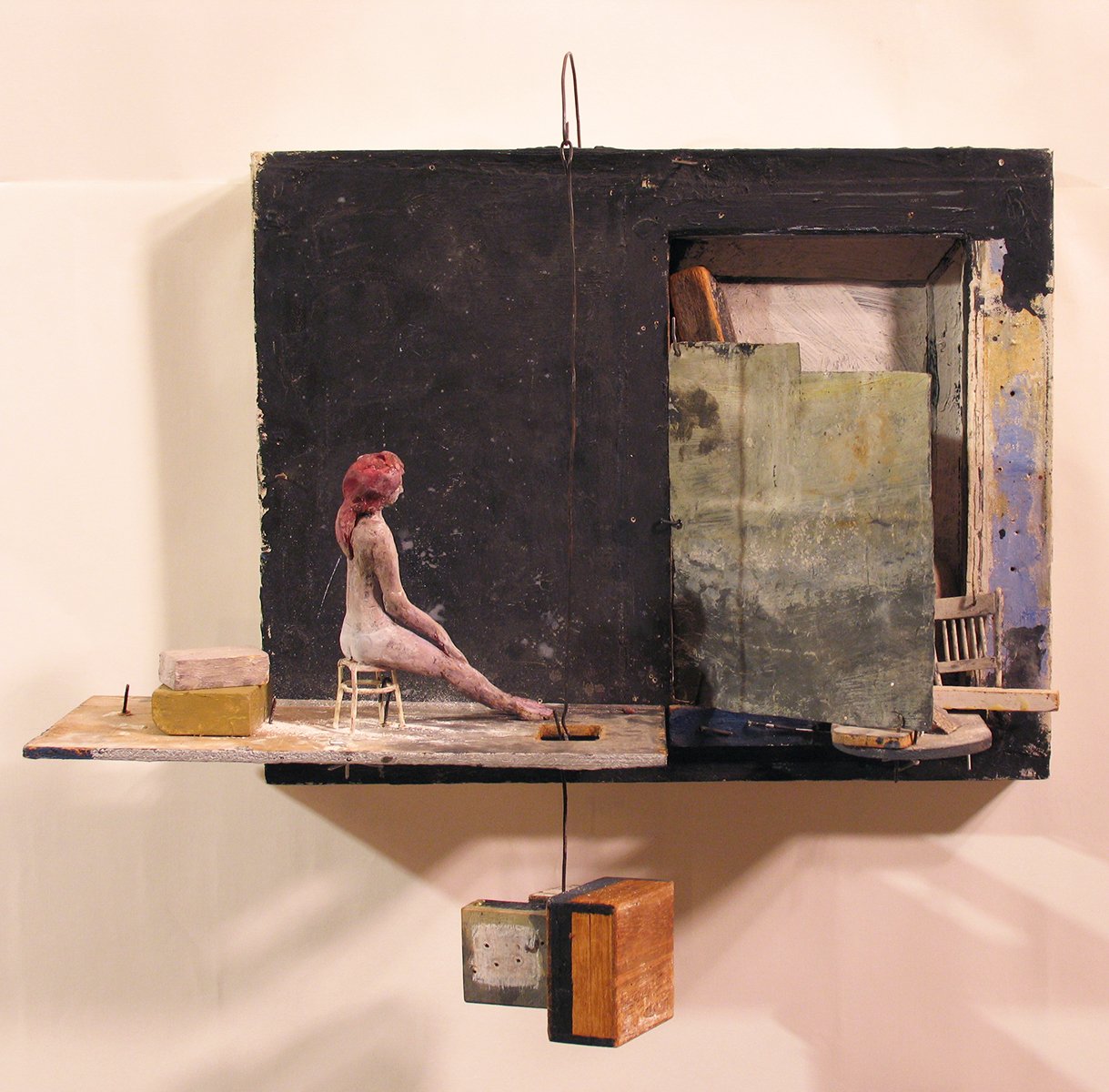 , detail, 2019, oil on canvas, wood, wire, photo, glass