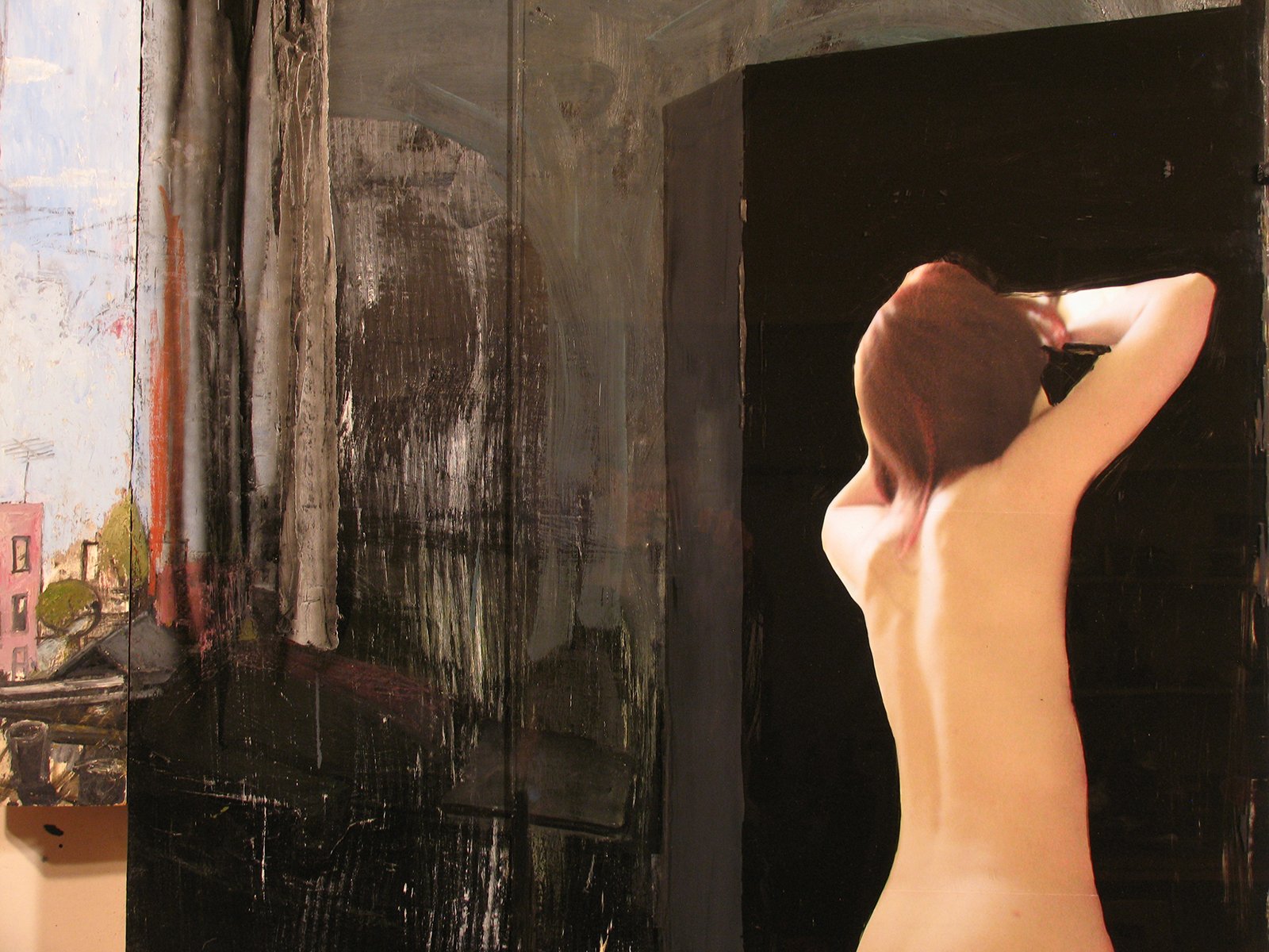 2014, oil on canvas, glass, photo(photo a collaboration with Kathline Carr), 48x48"