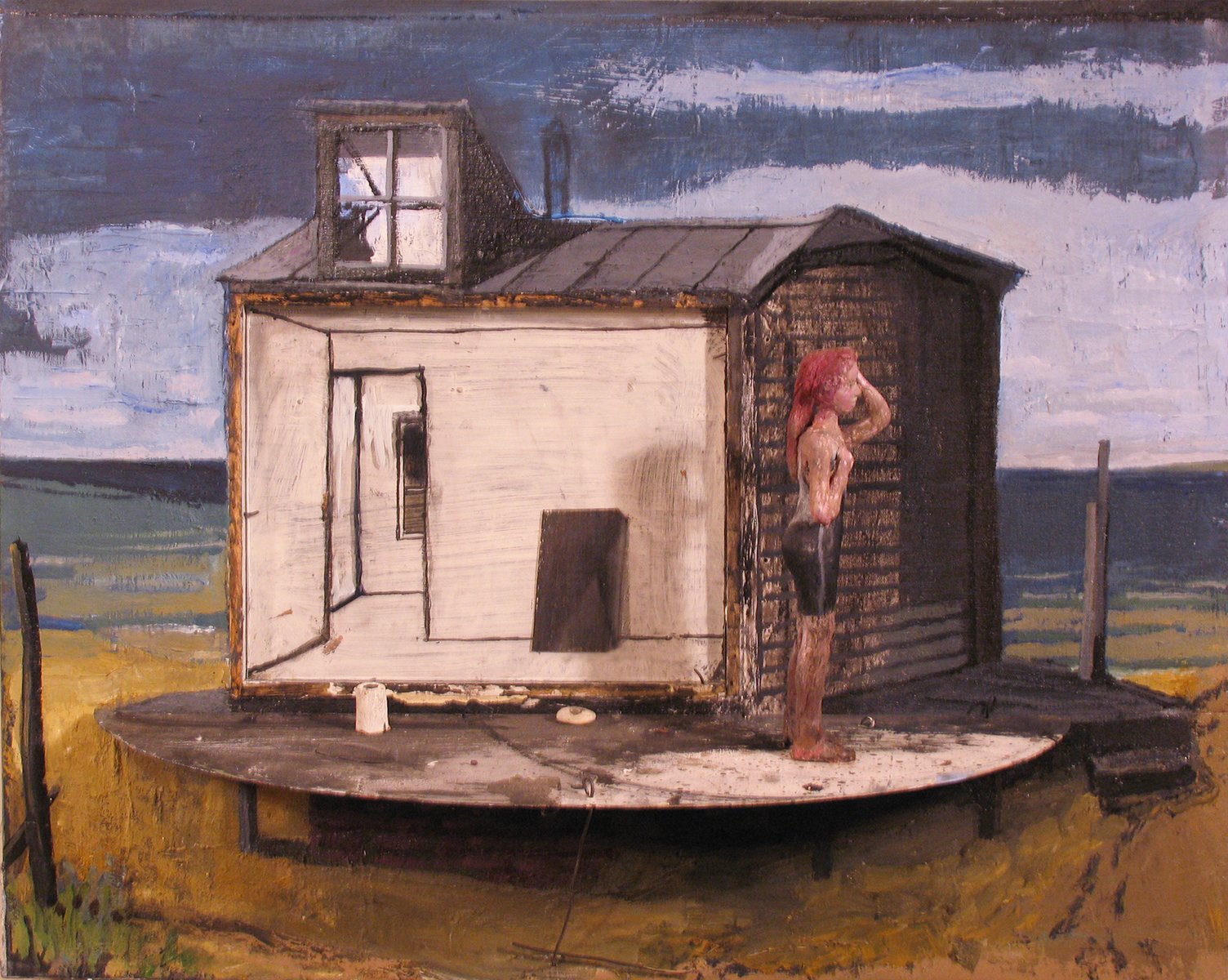 Qil on canvas, wood, photo, glass, metal, wire